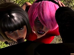 Hot 3D redhead licking a pussy while getting fucked